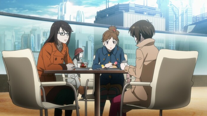 Начнём с диалогов. Если думаете, что тут будут простые разговоры о том, как провели вечер инспектор с блюстителем или какой современный мир хороший то вы... не совсем правы. Да, иногда тут будут такие диалоги, но когда в дело вступает Сёга Макисима то просто наслаждаешься. Он рассказывает про классическую литературу, он делает аллюзию на то, что нужно бороться с системой и быть свободным. Да и напарник Аканэ, тот же Синья Когами также выдаёт умные тирады. Более того, все диалоги это вам не ребячество с шутками. Забудьте, тут даже секса не было, даже поцелуя главной героини, даже сисек... а нет сиськи были. Ну если серьезно, то драмы тут больше чем весёлых моментов.