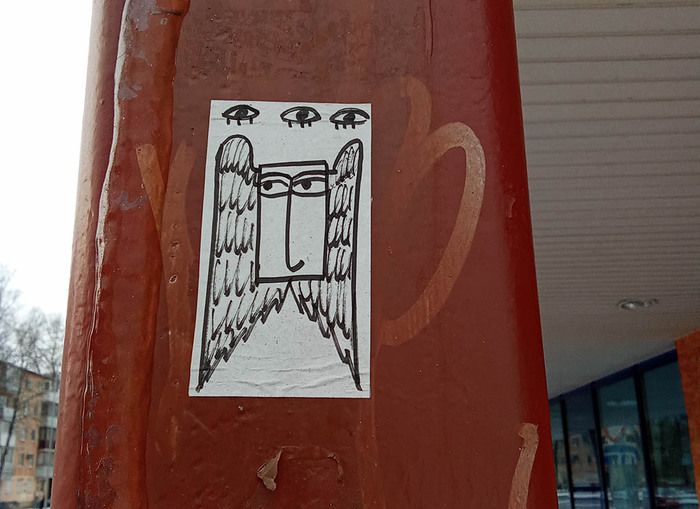 Вот, значицца, ссылка на саму статью: многабукв. А кому лень читать, рассказываю вкрации: одна верующая художница Эльмира Ярудова переехала в Псков, рисовала иконы, воспитывала детей, потом ей захотелось модернизма, примитивизма, наивного искусства и вот этого всего, и она придумала делать фигурки ангелов и прятать в разных местах города. Тема зашла простому советскому псковскому люду. И одни начали рисовать и клеить эти лики в неположенных местах, а другие искать, фотографировать и делиться в соцсетях. Причем не только в Пскове, но и в других городах. На самом деле я даже симпатизирую этому вандализму: все лучше чем объявления о помощи наркоманам, которые вообще везде, словно город из одних наркоманов.