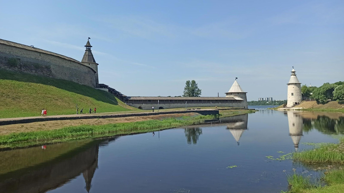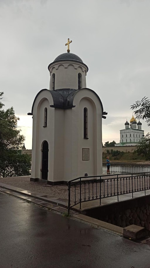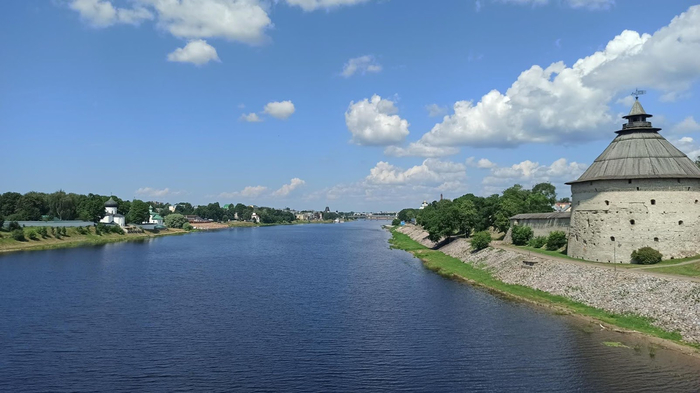 Расположившись на лавке с видом на реку Великую, довольно быстро определились с жильём. Решив не экономить лишнюю тысячу, заселились в удобную двушку в шаговой доступности от самого центра. С окраины точно заленимся куда-либо двигаться завтра.