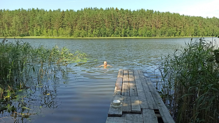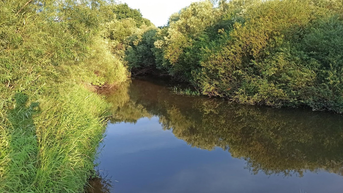 Накрутив 88 километров, встаем на ночевку у реки Великой, текущей в Псков. Можно было бы ехать ещё час- полтора, но дальше напряг с водоёмами, поэтому возможность помыться упускать нельзя.