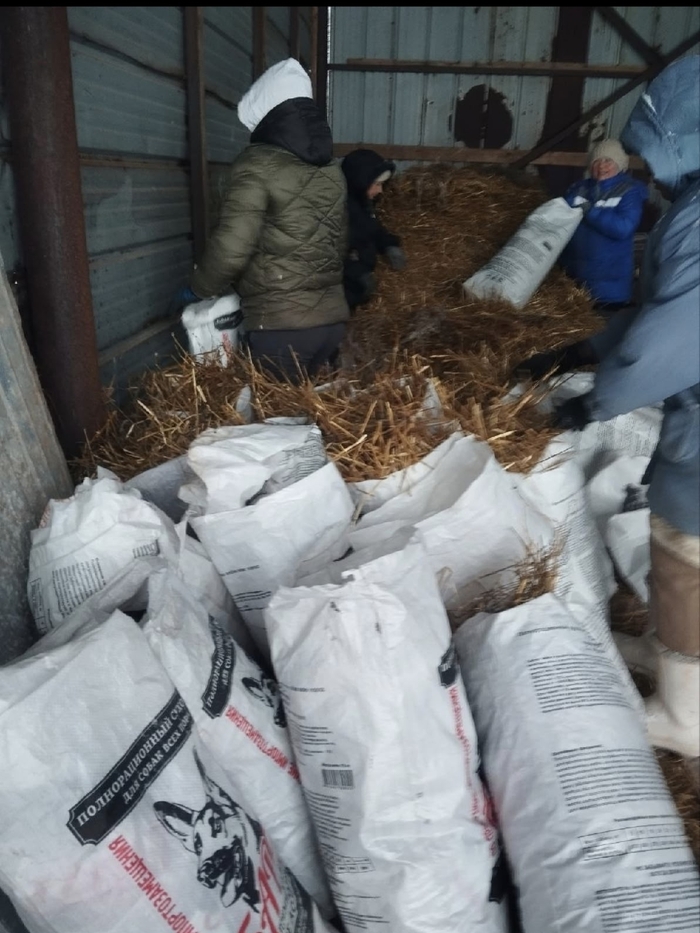 Собаки в грянувший мороз ночевали не на голых досках, а на соломе. И было им гораздо теплее!Жаль, что руководство не позаботилось о том, чтобы разложить по мешкам сено, закупленное волонтерами еще в сентябре, когда было тепло. Волонтерам тогда разрешили разложить по мешкам только один тюк.