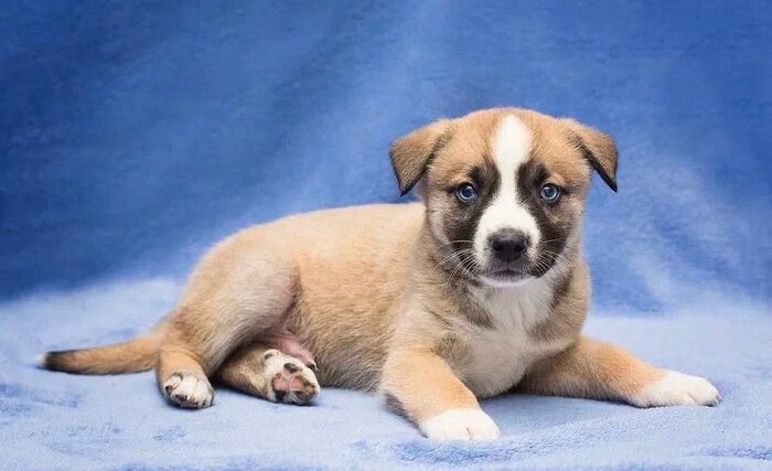 Он невероятно красив: редкий окрас и бездонные голубые глаза, в которые невозможно не влюбиться. Он ласковый, добрый, уже знает кошек и дружит с ними. В остальном — он просто здоровый, активный щенок с первой прививкой, которому нужно воспитание, терпение и любовь.