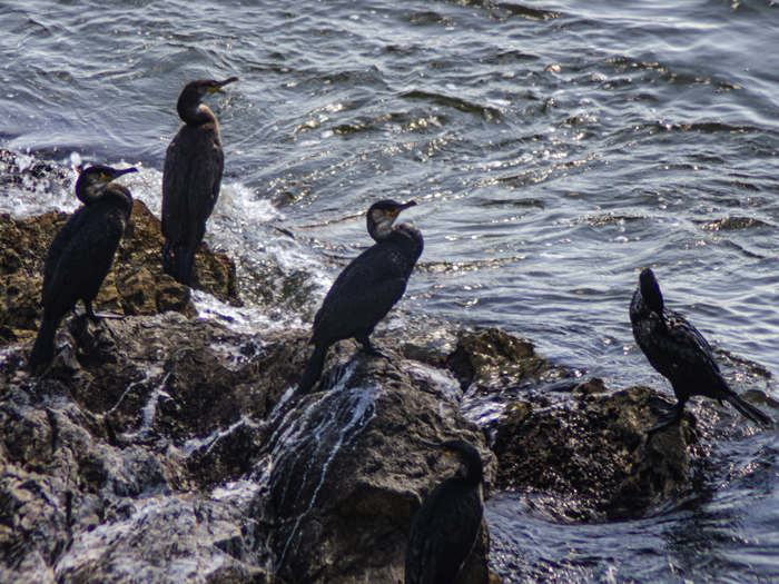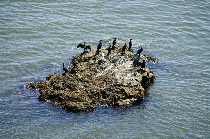 Большие бакланы облюбовали это место совместно с чернохвостый и чайками.
