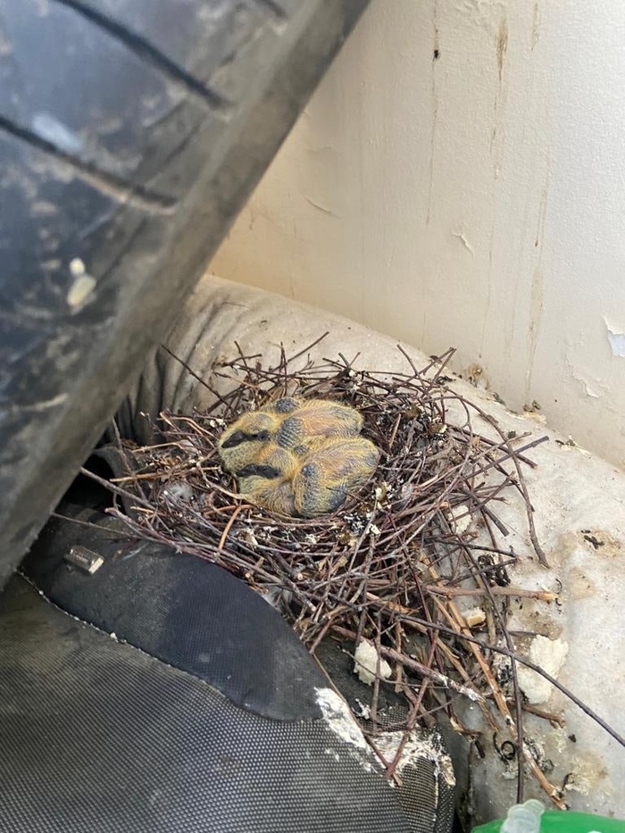 Сегодня зашла на общий балкон, а там эта снова высиживает яйца.