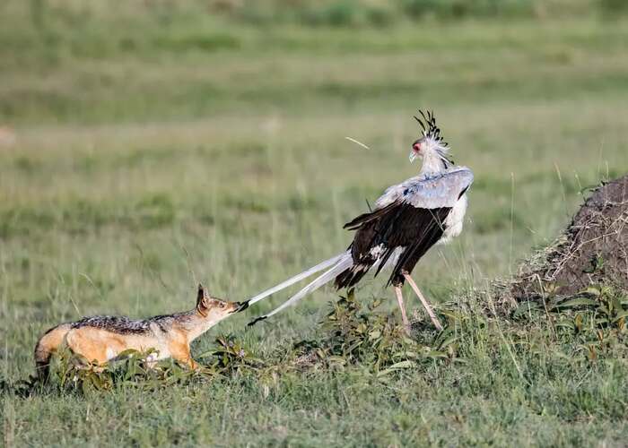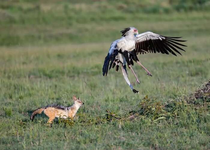 Некоторые пернатые решают использовать мастерство секретаря себе во благо. Например, каменный орел. Он регулярно ворует добычу.