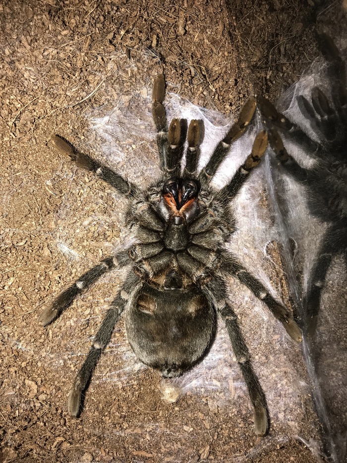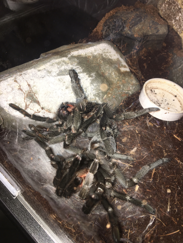 Эти двоим девочкам ещё расти и расти, линяют примерно раз в месяц. Наш третий паук - брахипельма смитти, подарок одного хорошего человека. Наверное лучший паук для новичков, спокойный, ручной, красивый, и даже на фоне остальных пауков неприхотливый.
