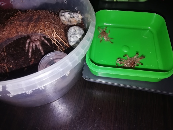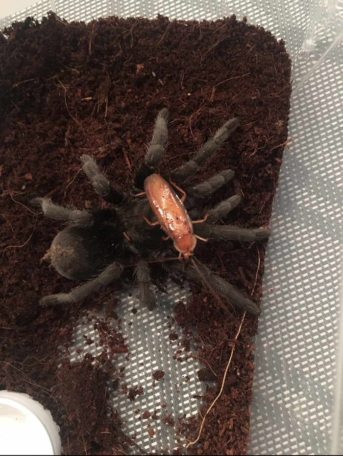 таракана,но он его есть не стал,так они и жили несколько дней,спали вместе,гуляли,таракан иногда ползал прям по пауку))Я тогда был малоопытным и не знал,что раз отказывается от еды-значит будет линять.Вообщем таракана убрал и паук