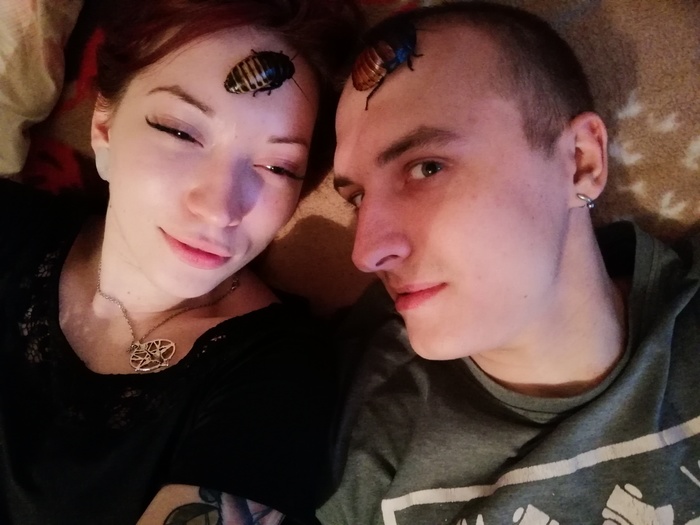А ещё милейший человек который продал мне первых двух пауков, дал в нагрузку пару мадагаскарских тараканов. Для девушки питомцы, для меня еще один вид корма паукам) И они через пару месяцев дали потомство.
