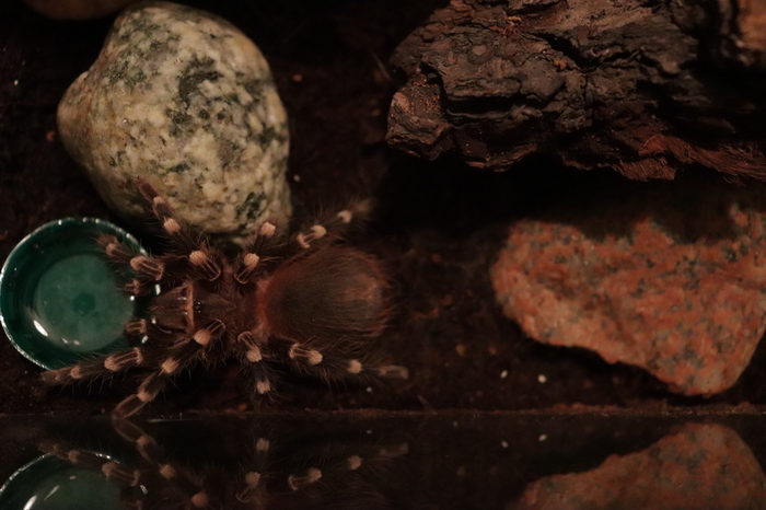 Ещё у меня есть один птицеед, Brachypelma Emilia, который потихоньку подрастает (пол пока неизвестен, материалов по нему у меня мало) и о котором тоже в будущем расскажу.