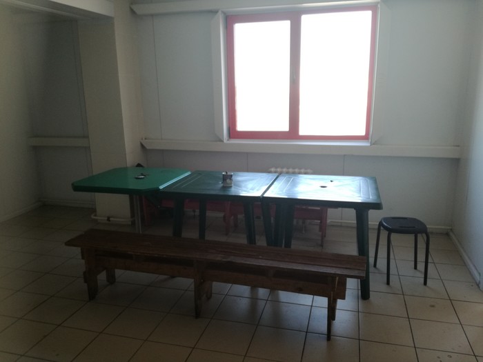 Ещё одна болезнь склада, это комната бедных водителей... Тут они принимают транспортные накладные, заполняют свои документы. Ладно бы один два человека, но когда толпа, сидеть не на чем, писать не на чем... Вот так страдают даже водители.