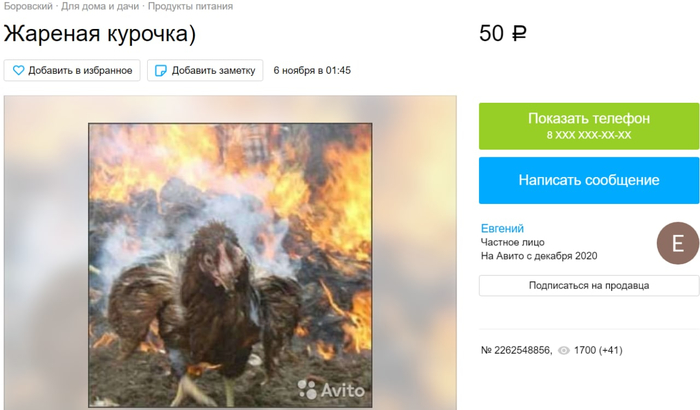 Пока в Боровом догорает последняя продукция птицефабрики, на AVITO появилось объявление о продаже жаренной курицы.