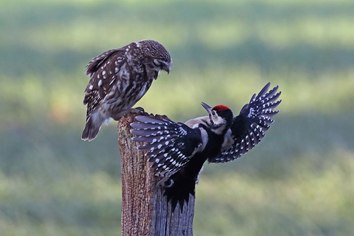 Но вот за стеной вдруг начинает стучать молоток, а то и похуже – включается перфоратор. В адрес соседа тут же полетят нелицеприятные высказывания, ведь нет ничего хуже той головной боли, когда просыпаешься от шума посреди мирного сна. Да, совы терпеть не могут дятлов. Вместо тысячи слов – сердитый взгляд ждет стучащую по стволу дерева птицу в яркой шапочке.