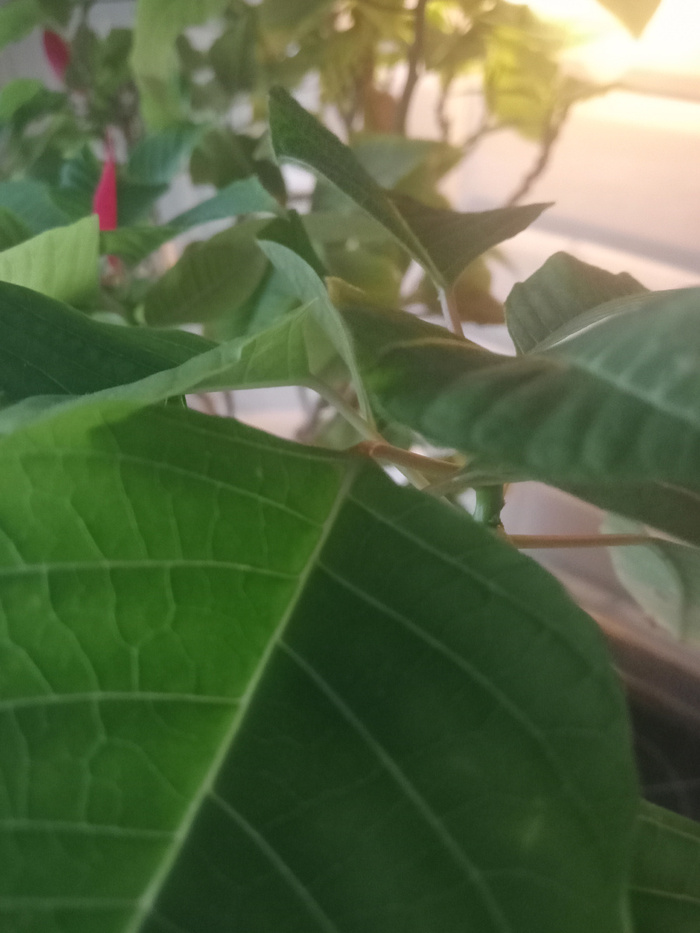 Влажность: Пуансеттия любит повышенную влажность. Регулярно опрыскивайте воздух вокруг растения, избегая попадания воды на листья.