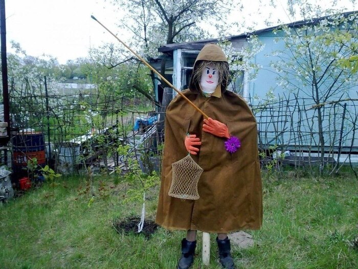 Я решил идти своим путём (ибо дурак лёгких путей не ищет). Даже где-то на Пикабу был пост про "Летающую" птицу, да и гугл в помощь, - в общем созрел план: сделать макет парящей хищной птицы с динамикой (движениями крыльев) и подвесить её на высоте 4-5 метров над огородом. Получилась вот такая птичка 1.4 м в размахе. (на видео просто пробное вывешивание для балансировки, на самом деле она должна быть высоко, да и груз (ведёрко с камнями) рядом висеть не будет)