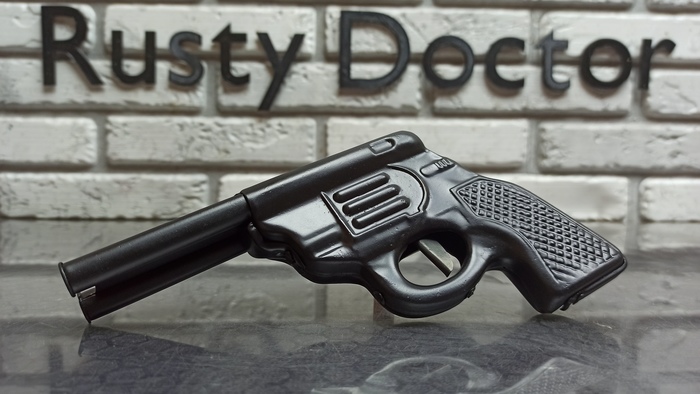 Фактичеки это многоразовая петарда. Вариаций изготовления и нюансов было много. Трубки брались на свалке, скручивались с бесхозных поломанных тракторов. Их тогда еще не сдавали почему-то на металлолом. Или можно было найти старый холодильник и добыть медную мягкую трубку из него, а можно было и не медную, там были и железные. Резинка отрезалась от велосипедной камеры, а в сплющеную часть набивалась фольга от шоколадки для герметизации и формирования камеры сгорания, для плотной запрессовки серы от спичек.