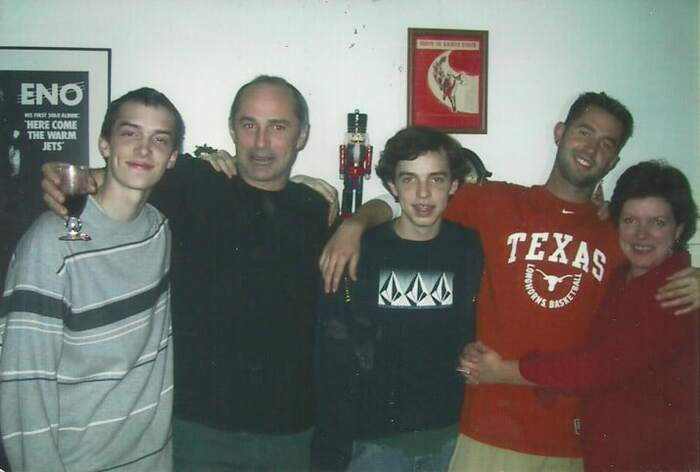 Эта счастливая семейная фотография приняла новый смысл из-за дополнительной руки. Она на правом плече отца (второй слева). И никто не знает, чья это рука. И ребёнок с брекетами тут ни при чём. Слишком велика дистанция до плеча.