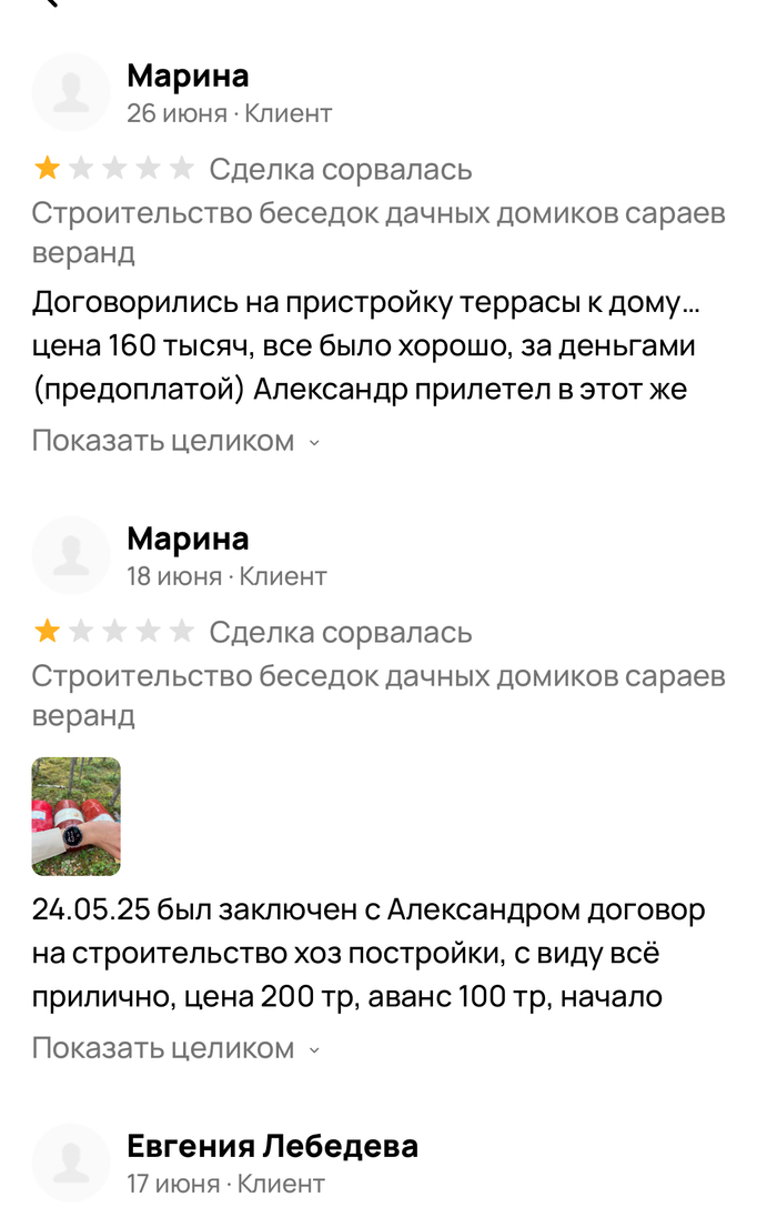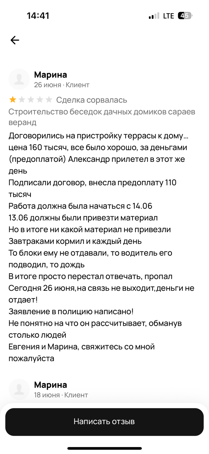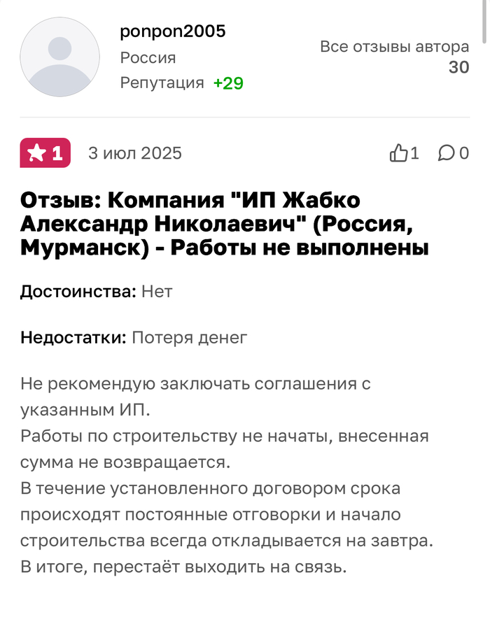 Почитала отзывы, человек на сайте с 2016 года, документы проверены. Правда отзывы хорошие, но не про стройку.