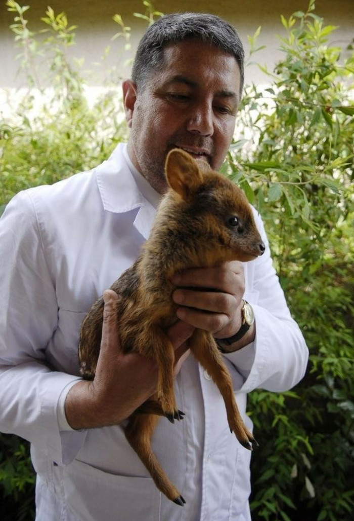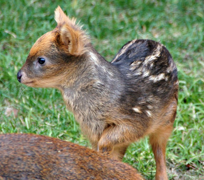 Друзья, перед вами олень! Да-да, самый настоящий взрослый представитель семейства оленевых, вот только весит это чудо в шерсти от 3 до 6 кг и ростом чуть больше 30 см. А детёныш так и вовсе едва переваливает за 400 г. Как месячный котёнок.