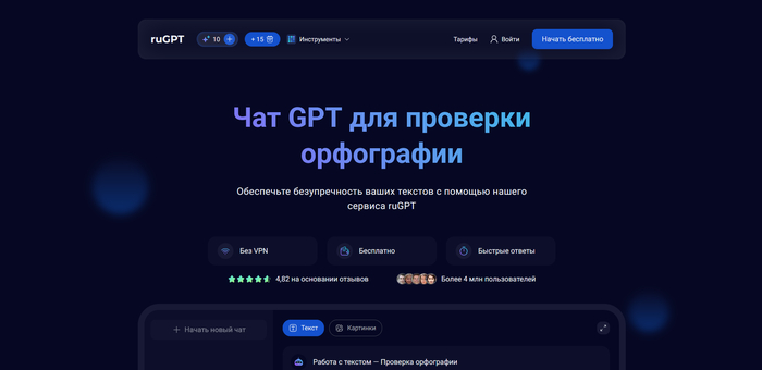 Среди удобных решений на русском языке особенно выделяется ruGPT.io — сервис с простым интерфейсом, быстрой работой и точными исправлениями. Он отлично подходит как для повседневного использования, так и для подготовки ответственных текстов — будь то резюме, пост в соцсети или студенческая работа.