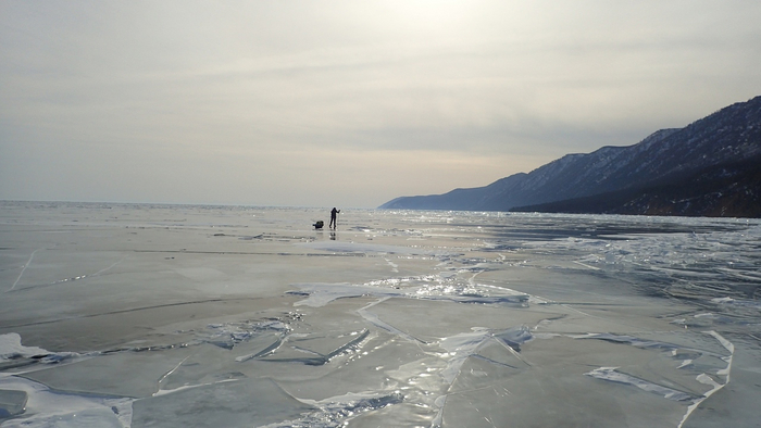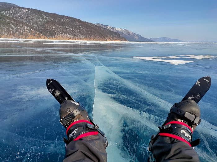Солнце неизбежно поднялось над горизонтом и нам вновь пора в дорогу. Лёд на выходе из Бугульдейки был почти сразу чистым и пригодным для конькового движения.