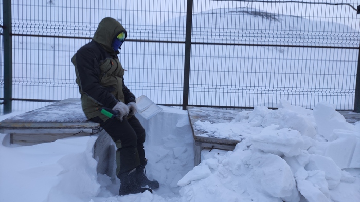 Я нашёл для нас отличную землянку для ночлега, но почему-то мы поставили лагерь на льду. Обидно.