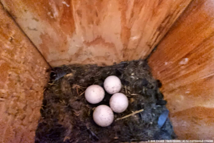В первом ящике осмотр показал наличие четырёх яиц и мы приспособили к к нему одну из фотоловушек, которая сейчас снимает, если её не украли, конечно, люди нетрадиционной душевной ориентации.