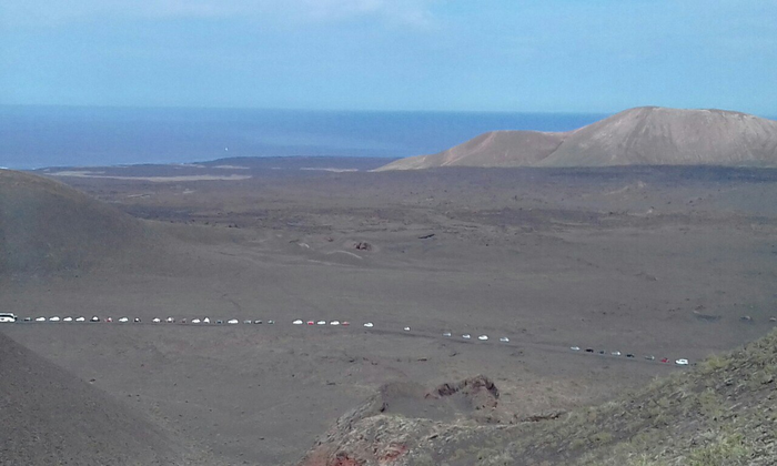 - Национальный парк вулканов Тиманфайя (не советую ехать на машине, можно попасть в глупую пробку), лучше ехать с экскурсией, автобус объезжает эту пробку. Дело в том, что на месте всех пересаживают на автобусы, а машины люди должны оставлять на парковках. Потом все едут по самым интересным местам парка на этом автобусе. У парковки есть ресторан, в котором мясо готовят геотермальным способом. Минусы путешествия с экскурсией: в ресторане не дадут посидеть, по дороге обязательно завезут покататься на верблюдах (можно не кататься, но ждать всех придётся). Общественные автобусы, к сожалению, туда не ходят.Прикреплю и свою фотографию с дурацкой пробкой, хотя и качество у неё вышло плохое.