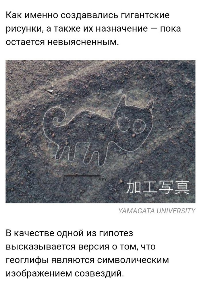 Впервые о теории инопланетного происхождения рисунков, упоминает швейцарский писатель, кинорежиссер и идеолог палеоконтактов Эрих фон Дэникен. Он утверждает, что все эти загадочные линии, ничто иное, как посадочные полосы пришельцев, а рисунки — это указатели для них. В подтверждение данной версии, британский астроном Джеральд Хокинс заметил закономерность, связывающую контур рисунков с полосами. Непрерывность линий напоминает микросхему. Он предположил, что канавки, которые проходят вдоль линий, в древности могли были быть заполнены неким люминофором. Таким образом посадочные полосы были подсвечены и были видны за десятки километров из космоса. А как вы относитесь к данной теории? Пишите в комментариях.