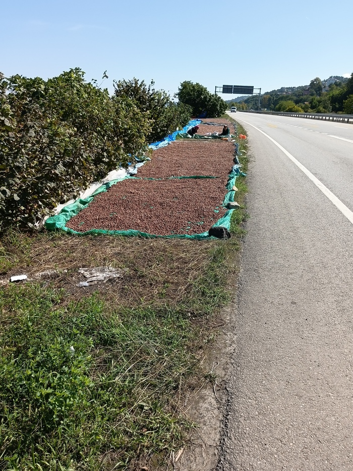 День пятый. Поели инжира и поехали. Вдоль Черного моря дальше двинулись на Самсун. Попали на сезон сбора фундука. Много десятков км все тротуары, велодородки, любые площадки - засыпаны им на просушку
