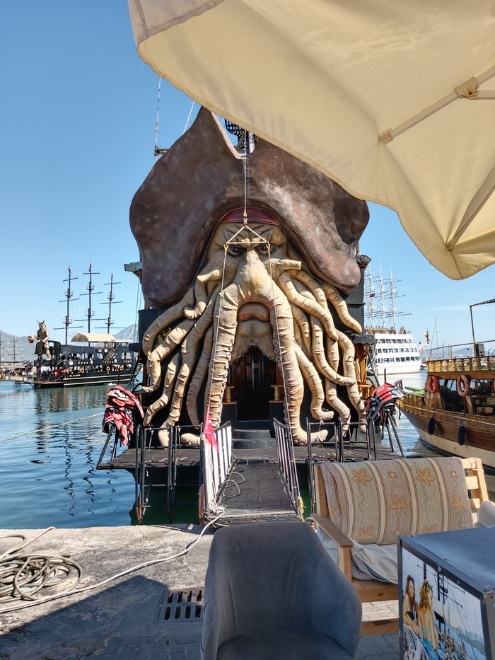 Поплавали на пиратском корабле. 2000 руб на троих. Пять часов в море, с обедом, с развлекухой, с файер шоу.