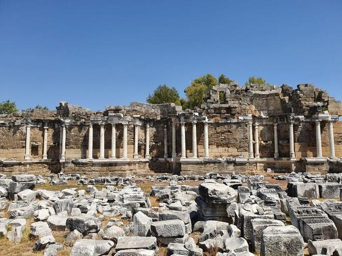 Помимо остатков крепостных стен и храма Аполлона, на территории Сиде расположен самый крупный римский театр в Турции. Очень красивое место, можно смело заложить пару часиков на осмотр, неподалёку несколько довольно неплохих ресторанов, в которых можно пообедать.