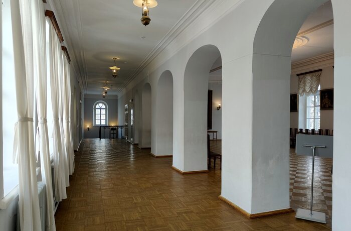 Поначалу сотрудники музея сослались на ремонт, который их тоже косвенно затронул, и не хотели меня пускать. В холле на первом этаже и правда какой-то бардак, следы от мешков, строительная пыль. Но на втором, как видите, тихо и спокойно. Короче говоря, меня пустили посмотреть музей, поэтому рассказываю, что в нём имеется.