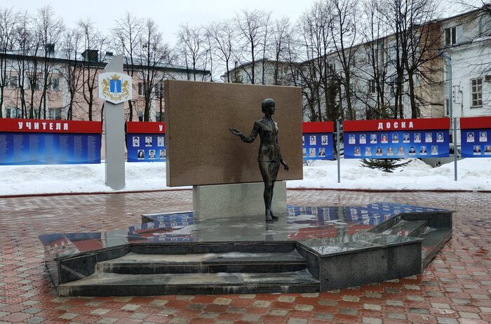 Одним словом, памятник учительнице 2007 года и доски почёта со списками и портретами учителей со всей области тут вполне уместны.