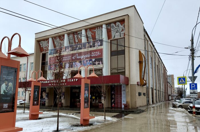 Свернём с эспланады в Театральный сквер. Всего несколько лет назад здесь была проезжая часть, но теперь всю власть захватили пешеходы. Другое формальное название нового места – Театральная площадь имени К. И. Шадько. Кларина Шадько – актриса местного драматического театра, умершая в 2020 году. Она проработала в театре почти 60 лет.