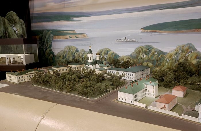 Частью экспозиции первого этажа является диорама «Старый Симбирск». В отличие от остальных витрин, она сделана в первые годы существования музея, то есть в начале 1990-х годов. Довольно забавно, что музей готовился к открытию тогда, когда шла перестройка и всем было уже не до классической ленинской темы, а заработал в 90-е, когда за любовь к Ленину можно было и по морде получить.