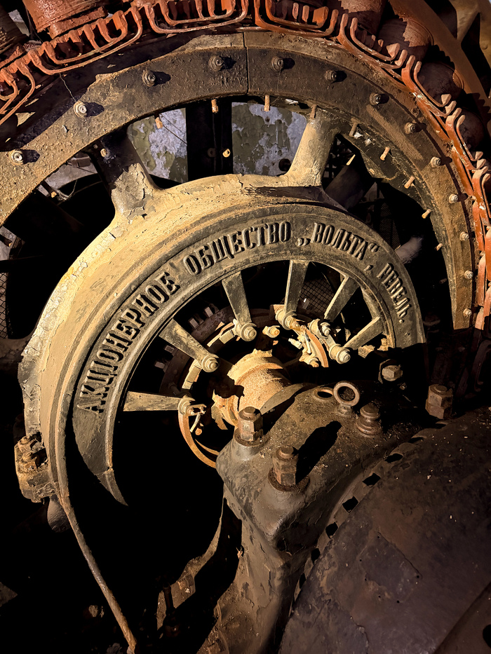 Опишу случайный экспонат, который бросается в глаза. Прибор с большим круглым диском – это электрофорная машина «Мерседес» Уимсхёрста. Предназначена для опытов по электростатике и демонстрации получения электрических зарядов. Можно сказать, что она была более-менее новым изобретением: электрофорную машину создал немецкий физик Август Тёплер в 1865 году, а данная модификация британского изобретателя Джеймса Уимсхёрста появилась в начале 1880-х.