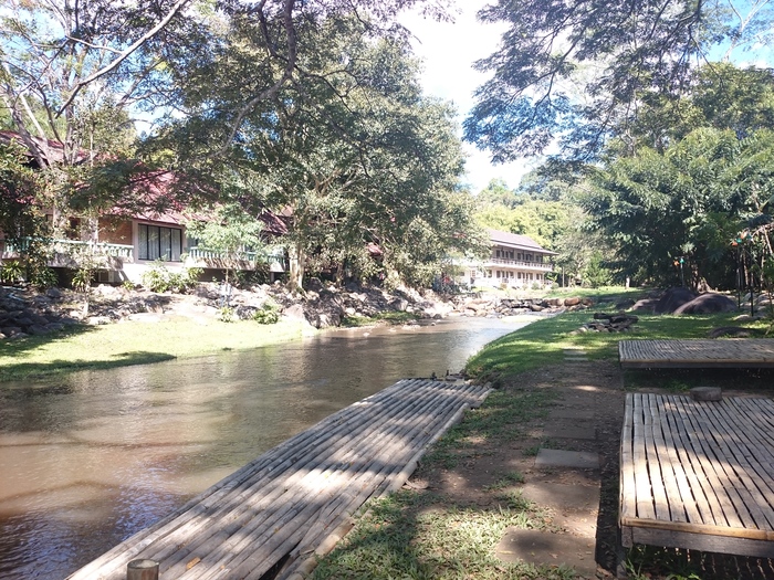 Чтоб посмотреть на местную жизнь за пределами торговых рядов, можно пройти в основную часть деревни. Туда даже нужно покупать билет, который стоит символическую сумму в 10 бат. Внутри деревни куча цветов, везде очень чисто, нет даже ни намёка на мусор. Прямо с уличных лотков торгуют разной ювелиркой – серебро, золото, камешки какие-то. В общем, вокруг очень бедно, но очень чисто и аккуратно. Находиться тут приятно.