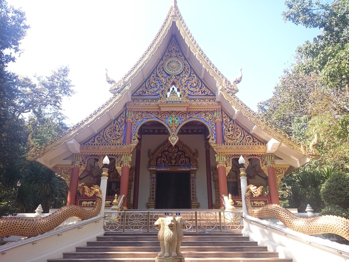 Добраться до места от моего дома можно довольно просто, около часа езды. Ехать предстоит по серпантинам, но не самым сложным, средняя скорость – около 40 км/ч. В слепых поворотах нужно сигналить, чтобы предупредить о своём присутствии. От перепада высоты уши слегка закладывает, а ещё довольно прохладно. Деревня лежит между вершинами двуглавой горы, Дой Сутеп и Дой Пуи. Вот маршрут, проложенный с окраины Чиангмая, где я живу: