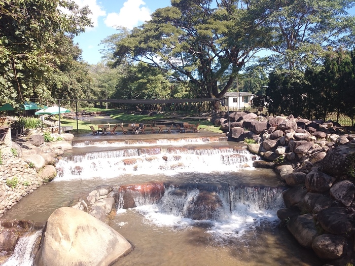 Вот фото внутри деревни. Тут есть водопад, пруд с карпами, цветы, монструозных размеров бамбук и разные беседки. Сюда раньше часто захаживали туристы, но это уже жилая часть деревни – в беседках сидят (или лежат и спят) хмонги, на улице играют дети. От водопада отведена бамбуковая труба, из которой можно напиться воды. Хмонги сказали, что вода чистая, из источника, и я склонен им верить.
