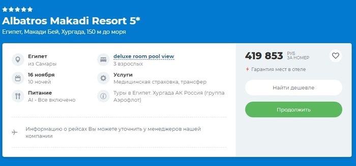 То же без особого валидола по цене: Albatros Makadi Resort 5*, Хургада, с ценой в 419 853 рубля.