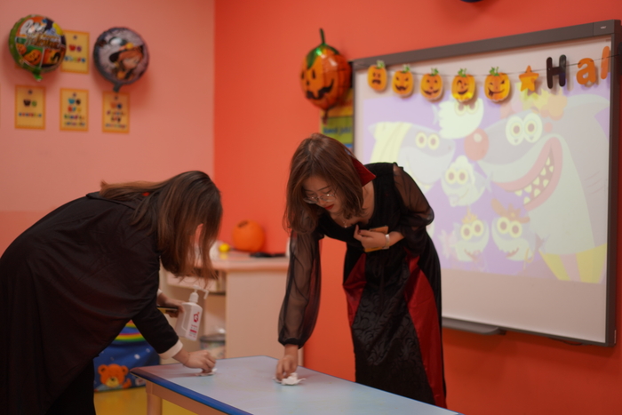 Другое дело— частный языковой центр. Вот где был размах фантазии и можно было разгуляться, выбирая костюм (за счёт заведения, естественно).