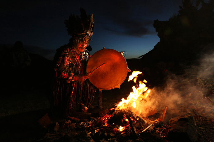 Я вспотел, мне стало жарко, начал слышать голоса. Сначала вдалеке, потом все ближе и ближе. Они звучали в моей голове громким шёпотом со всех сторон. Я ясно видел хоровод, в середине горел огромный костер, в круге был мой дед без бубна, без маски шамана, он танцевал. Я зашел в круг, начал танцевать вместе с ним. Хоровод сел плотным кругом и молча раскачивался из стороны в сторону. Я впал в транс.
