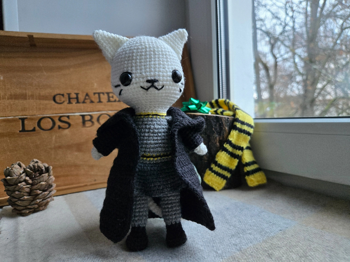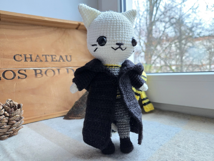 На второй день маркета мне написали в мастерскую с заказом на зайчика и кошечку. Зайчик по задумке должен был быть в коричневом костюме-тройке, а кошечка — в одежде с атрибутикой Пуффендуя.
