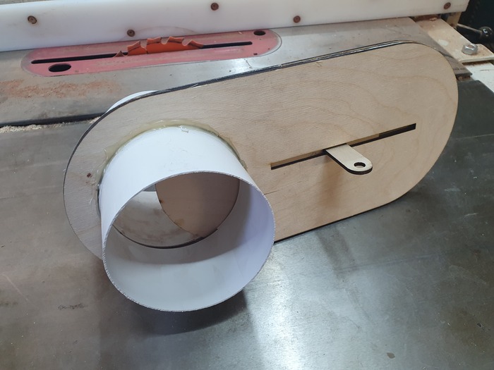 4мм фанера использована для зазора между заслонкой 3мм и корпусом. Все собирал на сопливый клей. Я как-то пробовал сделать заслонку поплотнее, почти без зазора. Но она работает плохо, клинит от пыли.