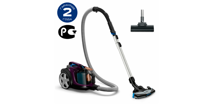Для уборки половых покрытий в комплекте предусмотрена универсальная насадка пол-ковер. Также есть насадка для очистки мягкой мебели и щелевая 2-в-1. Радиус действия у модели чуть меньше, чем у аналогов – 7 м. А уровень шума – один из самых высоких в рейтинге – 86 дБ. В остальном, это эргономичный стильный пылесос с большим мусоросборником, типовой комплектацией и хорошей силой всасывания. Большим разнообразием насадок порадует следующий участник.