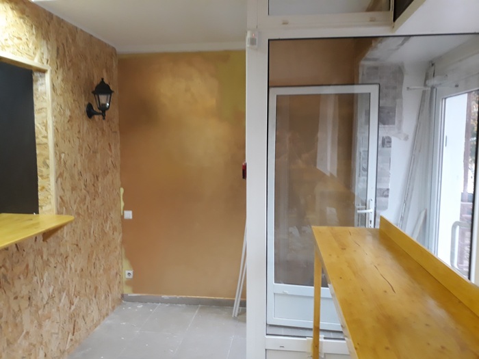 Тут надо ещё доделать - сделать наклейки на дверь и на второе окно, всё в процессе. Вывеска да, сам знаю, маловата, позже будет ярче и во весь балкон.