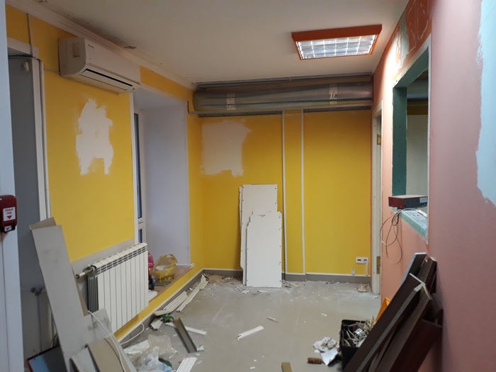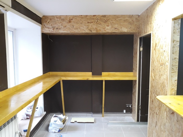 5. РЕМОНТ, ОТДЕЛКА помещения. С этим получилось забавно. Для того, чтобы придумать дизайн интерьера, надо было разбить бампер чужой машины. Возьмите на заметку! В итоге знакомство через несколько случайных встреч с нужным человеком с идеями и креативным мышлением, в отличие от моего. Следуя его подсказкам, закупил материал и сделал ремонт помещения, на который ушёл примерно месяц.