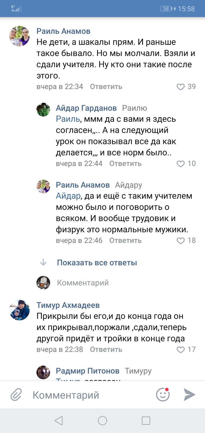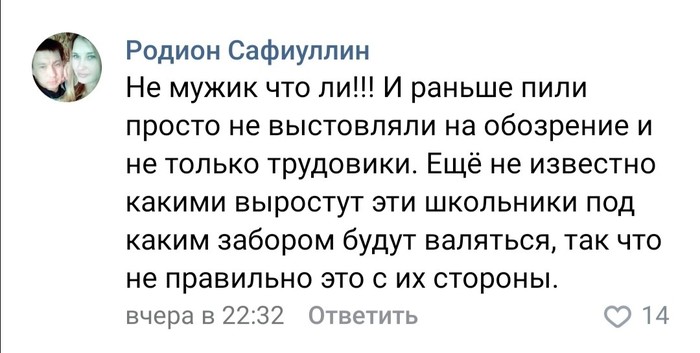 Ну и как водится в коментах к видео люди защищают трудовика приводя весомые аргументы: