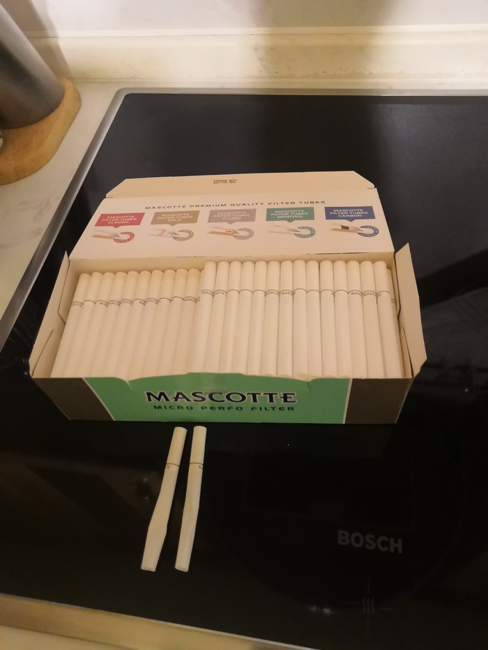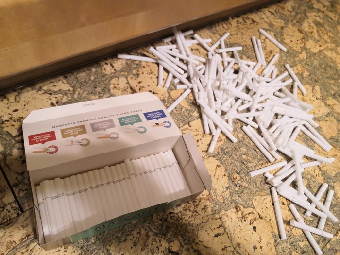Когда просыпал 189 гильз от сигарет, есть 5 по 100г. табака и ни одной готовой сигареты.