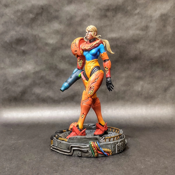 Миниатюра Samus Aran высотой 12 см. Отпечатана на фотополимернике Elegoo Saturn Mono.